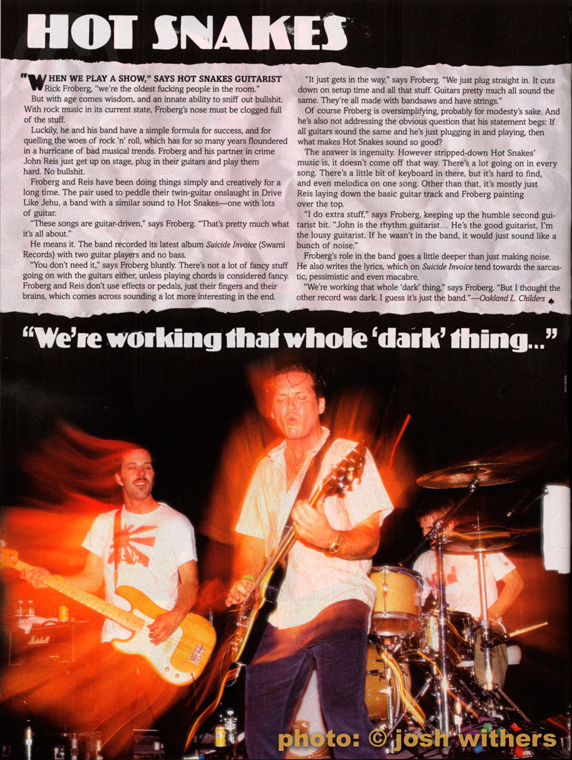 Hot Snakes in San Francisco for Thrasher Magazine, 2002.