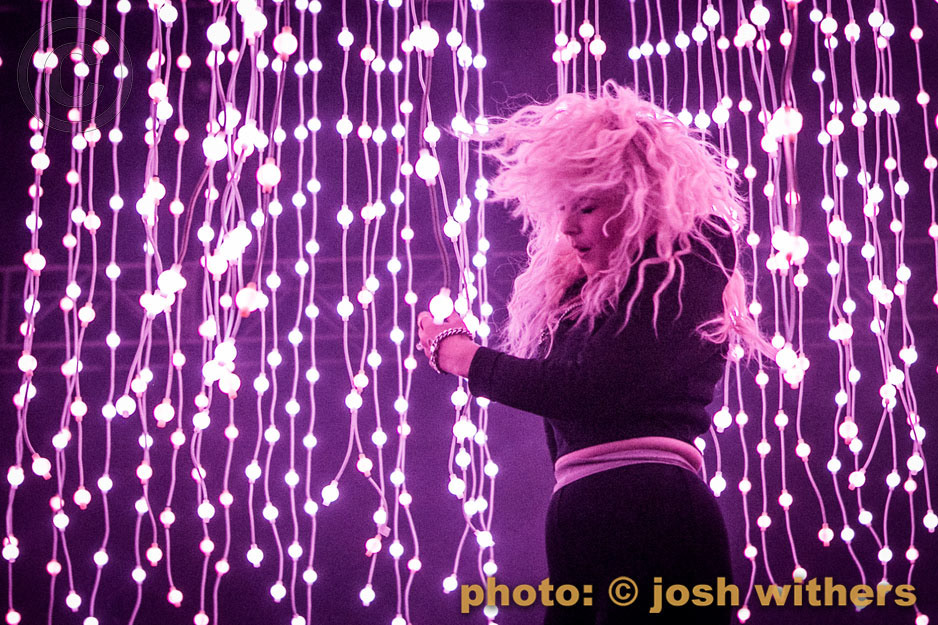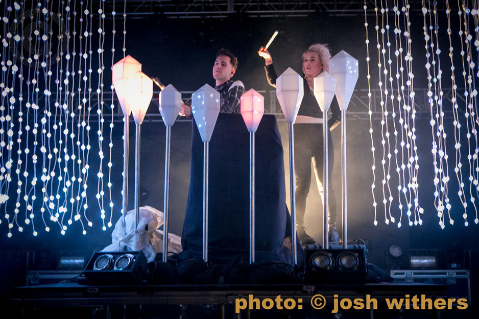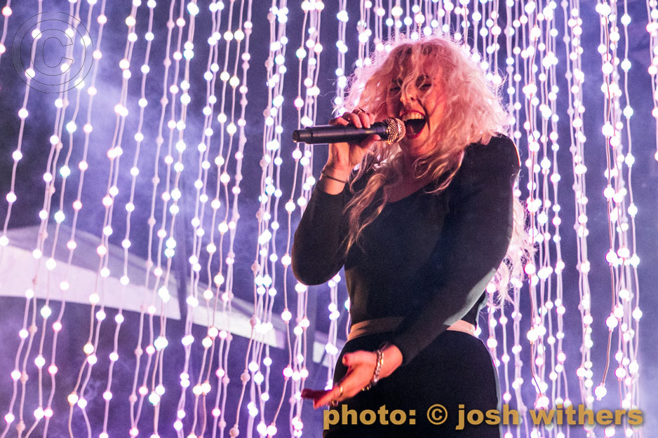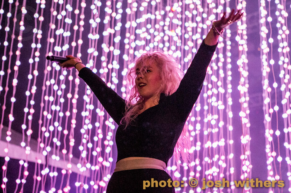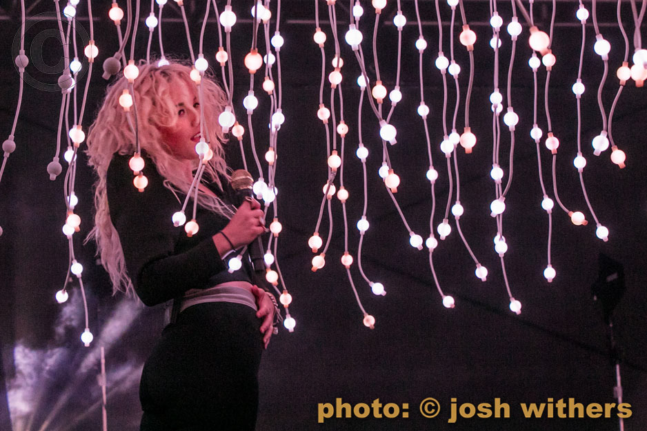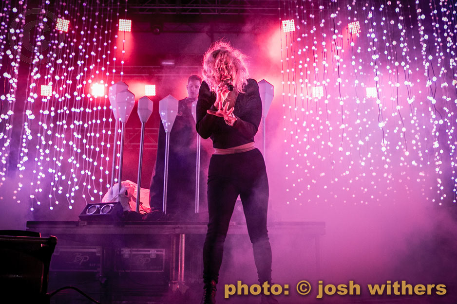 Purity Ring in the rain at the 2016 Treasure Island Music Festival.