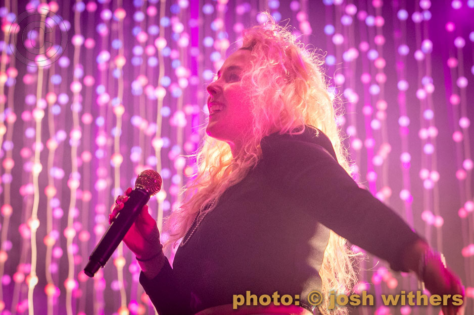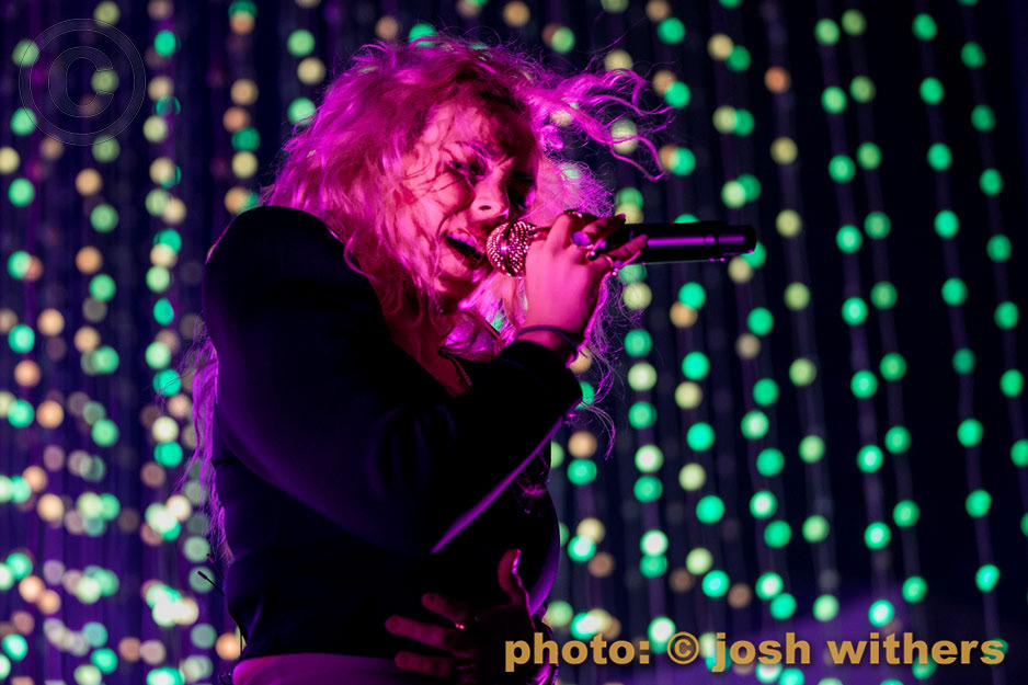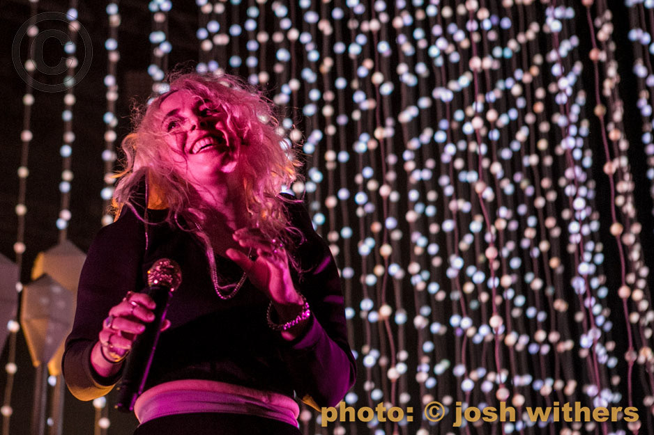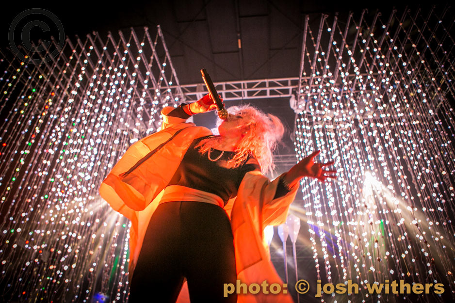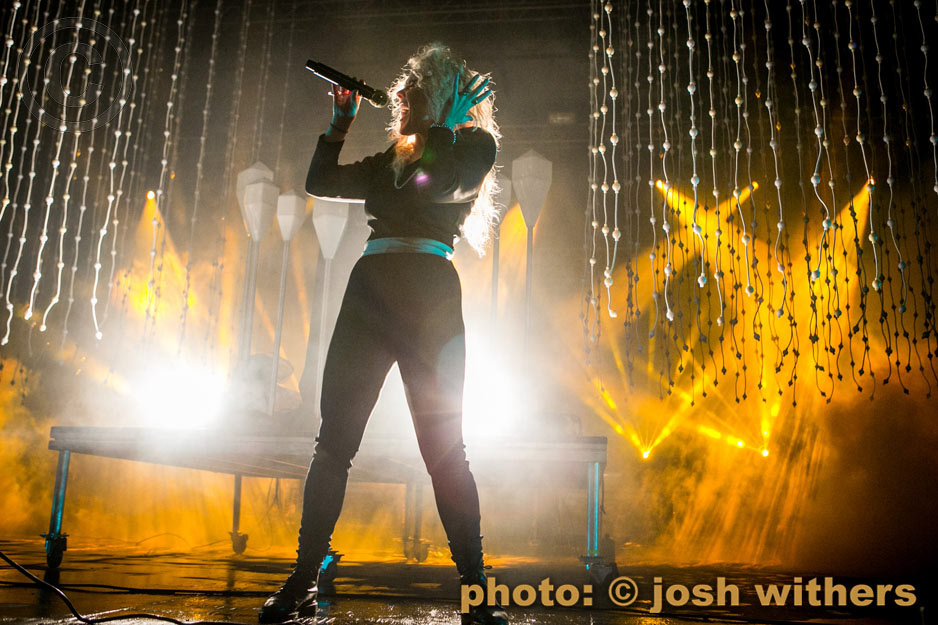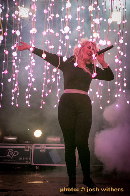 Purity Ring in the rain at the 2016 Treasure Island Music Festival.